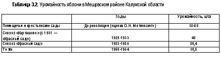 Вот какие данные приводит калужский агроном по урожайности яблони в Мещовском районе (у автора они разрознены, мы позволили себе свести их в таблицу).