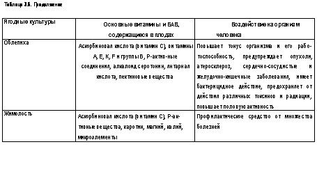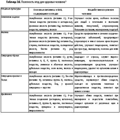 В следующей таблице обобщены сведения о содержании витаминов и биологически активных веществ (БАВ) в плодах важнейших ягодных культур и их воздействии на организм человека.