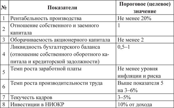 • эффективность управления активами; количественный критерий – не ниже среднего по отрасли и конкурентам. Стоит отметить, что данный показатель может быть и намного выше, чем у конкурентов. Особую роль в повышении этого показателя играют инновационные технологии мирового уровня конкурентоспособности и автоматизация производства. Конечно, возникает проблема избыточного количества рабочих мест и соотношения стоимости текущего ручного труда (дешевого) и стоимости будущего автоматизированного труда (более дорогого). Выбор в пользу последнего будет принят в зависимости от эффективности новых технологий и доходности инвестиций. Это еще раз подтверждает актуальность рассмотрения системы показателей, а не единичных критериев;