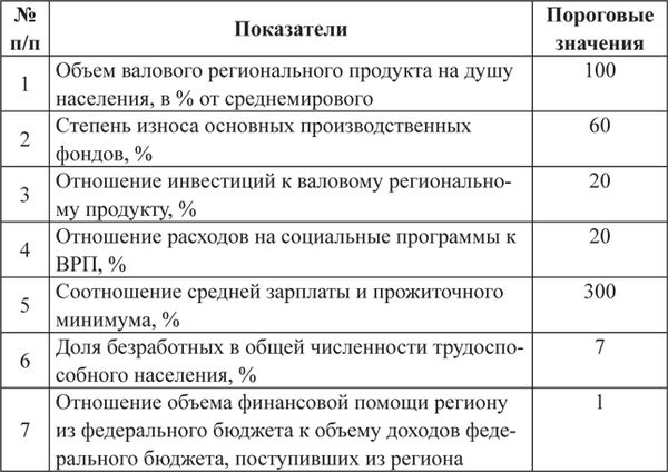 На величину ВРП непосредственно влияет состояние основных производственных фондов (ОПФ). Из-за износа фондов сдерживается и даже прекращается экономический рост, происходит деградация экономических основ общества. Для поддержания высокого уровня производства за счет увеличения объемов и обновления ОПФ необходима грамотная поэтапная инвестиционная политика. Соответствующий уровень инвестиций гарантирует нормальный ход воспроизводственного процесса и возмещение выбывающих фондов. В связи с этим целесообразно включить в систему показатель, отражающий степень износа ОПФ, и показатель, представляющий собой отношение инвестиций, поступающих в экономику региона, к ВРП.