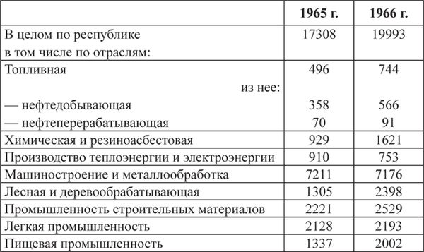 В то же время назрели и серьезные проблемы, связанные со снижением роста региональной промышленности. И если в 1960-е гг. нормы плановых показателей практически ежегодно перевыполнялись, то уже в 1970–1980-е гг. результаты стали резко снижаться. По таким показателям, как годовой объем выпуска, реализация продукции, производительность труда, снижение выпуска низкокачественной продукции, очень часто наблюдалось недовыполнение. И даже если в отдельные годы нормы плана оказывались перевыполненными, то это происходило только за счет результативности отдельных крупных предприятий. Все это говорило о том, что общие тенденции кризиса командной экономики затронули и ТАССР.