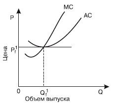 • цена равна минимальным средним издержкам производства, что обеспечивает фирме самоокупаемость, т. е. фирма только покрывает свои издержки, что дает ей возможность получать нормальную прибыль (рис. 26.3);