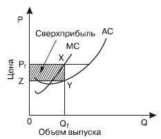 На рис. 25.1 показано, что равновесные цена и объем выпуска в коротком периоде равны соответственно Pf и Qf. При данной цене конкурентная фирма достигнет объема выпуска на уровне Qf (Р = МС) и получит сверхприбыль (Pf XYZ).