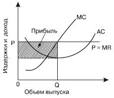 Поскольку на цену не влияет конкурентная фирма, то на свой доход она может повлиять лишь посредством изменения объема продаж. Если валовой доход фирмы больше совокупных издержек, то она получает прибыль. Если совокупные издержки превышают валовой доход, то фирма несет убытки.