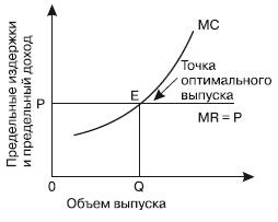 Предельным условием максимизации прибыли является такой объем выпуска продукции, при котором цена равняется предельным издержкам.