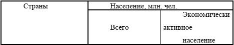 Экономически активное население включает занятых и ищущих работу. Экономически активное население мира в конце 90-х годов оценивалось в 2784 млн. человек, что составляло 47,8 % всего населения мира. В таблице 9 показана численность населения и его экономически активной части в ряде стран мира [72] .