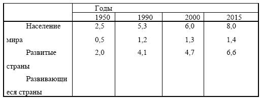 Сейчас население мира растет в среднем на 1,4 % в год при абсолютном приросте около 80–87 млн. человек. Если относительные темпы роста [71] снижаются максимальное значение 2,1 % достигнуто в 60-х годах, то абсолютный рост в 2000 г. проходит через свой пик.