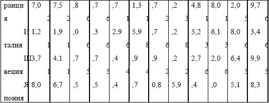 В результате действия этих факторов доля затрат на услуги в сумме потребительских расходов за 1983–1996 гг. в США повысилась с 51 до 59 %, во Франции - 38 до 47, в Великобритании - с 39 до 48 5 %, в Японии - с 51 до 58 % [86] .