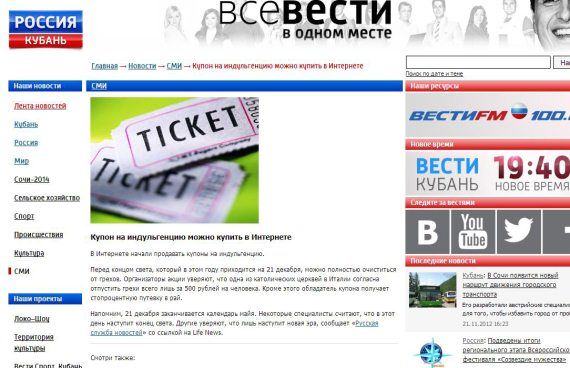 Вот, в принципе, здесь такая была вещь: ну где-то, наверное, дня три мне пришлось задерживаться на работе, потому что к ним в очередь вставали "телеки". Три дня вот шло это. И потом Задорнов написал у себя в посте, что продают индульгенцию к концу света, что творится товарищи?! Как же такое вообще возможно?! Вы посмотрите!