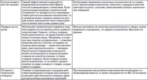 В таблице приведено сравнение наиболее распространенных видов маркетингового стимулирования розничных покупателей.