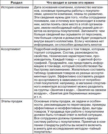 Таблица 1.4. Содержание методической "Папки продавца-консультанта"