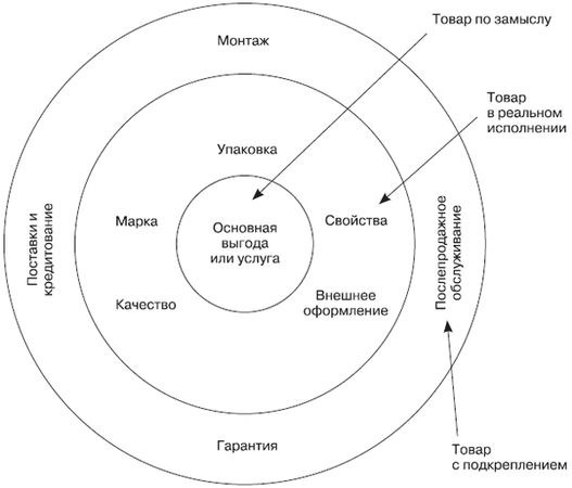 Рис. 14. Три уровня товара (по Т. С. Бронниковой, А. Г. Чернявскому, В. Д. Дорофееву, А. Б. Зубкову)