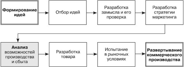 Рис. 16. Процесс разработки товара-новинки (по В. Д. Дорофееву, А. Б. Зубкову)