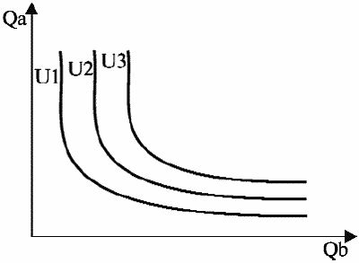 1) кривая безразличия – горизонтальная линия (например, школьник не возьмет ни одного пирожка с капустой, сколько бы ему их не давали, взамен пирожка с яблоками, если он просто не любит капусту);