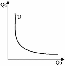 При этом любой набор товаров, соответствующий каждой точке кривой безразличия U2, приносит потребителю большую совокупную полезность, чем любой набор товаров, соответствующий каждой точке кривой безразличия U1.
