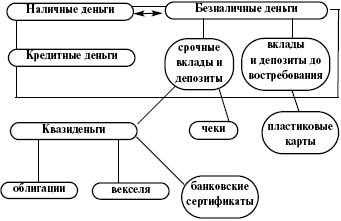 3) в современной финансовой системе существуют также и денежные суррогаты. Они представлены прежде всего кредитными картами. Кредитная карта сама по себе деньгами не является, но служит заменителем немедленного денежного платежа. Кредитные карты выпускаются банками на базе счета клиента в форме пластиковой карточки с нанесенной на ней встроенной микросхемой. Выделяют также карты, которые называются "карточки хранящейся стоимости" или "умные" карточки. Ими можно платить за товары, не ссылаясь на банковский счет (схема 1).