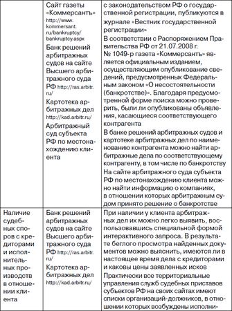 В результате работы с указанными открытыми информационными источниками можно получить достаточно сведений о контрагенте, [18] которые вкупе с информацией, сообщенной самим контрагентом, позволят принять взвешенное решение о том, стоит ли работать с данным контрагентом [19] и какие могут быть подводные камни в предполагаемом сотрудничестве.