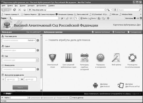 Рис. 2.5. Страница сайта Высшего арбитражного суда РФ