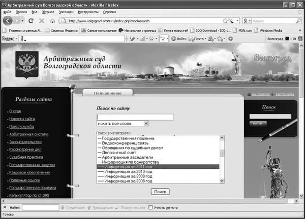 Рис. 2.6. Сайт арбитражного суда субъекта РФ по местонахождению клиента (на примере сайта Арбитражного суда Волгоградской области)