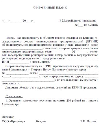 Рассмотрим примеры запросов в адрес налогового органа о предоставлении сведений из ЕГРЮА либо ЕГРИП
