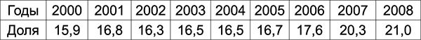 Таблица 2.9. Доля инвестиций в валовом продукте за 2006-2008 гг. (в %)