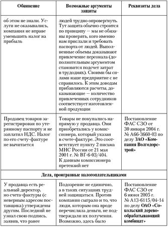 Реальность получения нефти также осталась недоказанной. Контролируя поставщика углеводородов (ООО "Стройтрейд"), инспекторы выяснили, что в компании числится только директор, работающий учителем рисования в местной школе. Естественно, ни налоговики, ни судьи не поверили, что он возглавляет крупное предприятие. Защититься от такого обвинения сложно, но можно (табл. 2).