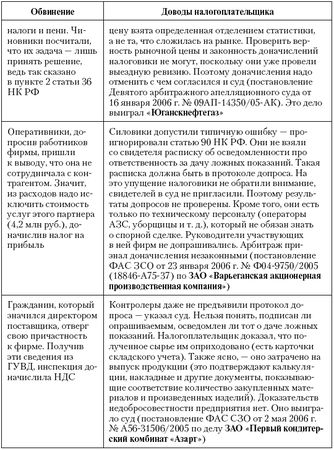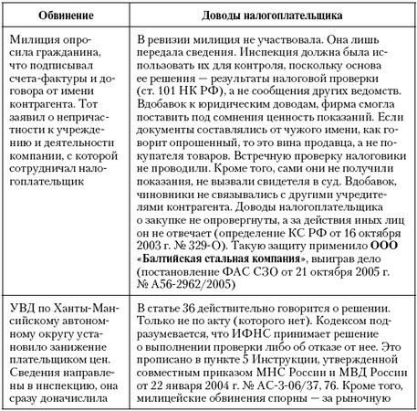 Арбитраж не ограничивает права силовиков. Они часто ошибаются при оформлении документов или не собирают полного комплекта доказательств, чем пользуются многие налогоплательщики. Основная защита строится на инертности фискалов (табл. 27). Они не проверяют информацию, полученную от милиции, когда та не участвует в выездной ревизии. Поэтому нарушается статья 101 НК РФ (решение об ответственности выносится по данным налоговой проверки). Кроме того, не устраняются неясности в полученных сведениях, которых надо найти как можно больше.