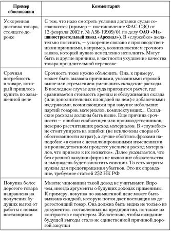 Таблица 11. Примеры обоснования "неэкономной" покупки
