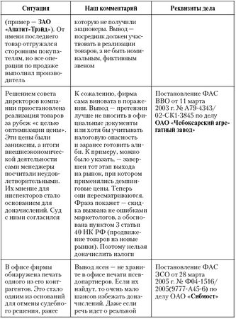 Таблица 12. Ошибки бизнесменов, которые помогли контролерам доказать занижение цен