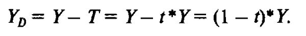 После того как получили располагаемый доход, вы используете очень простую модель для вычисления потребительских расходов домохозяйсгв. Модель показывает, что потребление, С, - это функция располагаемого дохода и пары других переменных, С0 и с: