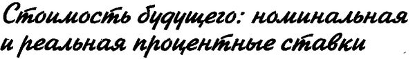 Поскольку инфляция уменьшает стоимость погашения ссуды (за деталями обращайтесь к разделу "Результаты инфляции" выше в этой главе), экономисты должны делать различия между номинальными процентными ставками и реальными процентными ставками. Номинальные процентные ставки - это обычные процентные ставки, которыми вы пользуетесь; они измеряют доходность кредита в виде отношения возвращаемой суммы денег к сумме, взятой в долг. А реальные процентные ставки вычисляются с поправкой на инфляцию, измеряя возврат кредитов в пересчете на единицы выданных в виде займа продуктов и единицы возвращенных продуктов. Это различие очень важно, потому что именно реальная процентная ставка создает у людей желание накапливать деньги и совершать капиталовложения. Ведь что в действительности заботит кредиторов? Не то, сколько денежной массы они получат обратно, а то, сколько товаров они смогут приобрести на эти деньги.