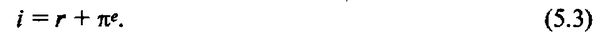Для того чтобы увидеть формулу (5.3) в действии, предположим, что заимодавец и заемщик договорились, что 6% - это приемлемая реальная процентная ставка. И они также договорились, что через год инфляция, скорее всего, будет 3,3%. Используя уравнение Фишера, они составляют кредитный договор, указав 9,3% как номинальную процентную ставку. Год спустя, когда заемщик выплатит кредитору на 9,3% больше денег, чем было занято, эти деньги будут иметь - как ожидается - только на 6% больше покупательской способности, нежели занятые, при данном ожидаемом увеличении цен.