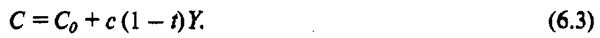 Во-первых, нам нужно определить функцию потребления - способ расчета общего потребления, - которую мы подставим в уравнение (6.1). В главе 4 представлена следующая формула для расчета потребления: