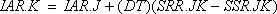Уравнение устанавливает прямую количественную зависимость, согласно которой запас товаров 1AR в момент времени К будет равен предыдущему значению IAR.J плюс произведение разности между темпами входящего потока SRR.JK и исходящего потока SSR.JK на продолжительность интервала времени DT, в течение которого существуют эти темпы. Короче говоря, то, что есть в торговой сети, равно тому, что в ней было, плюс то, что поступило, и минус то, что было из нее отдано.