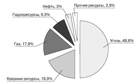 Рис. 15. Доля (в %) различных ресурсов при выработке электроэнергии в США (2004 г.) [26]