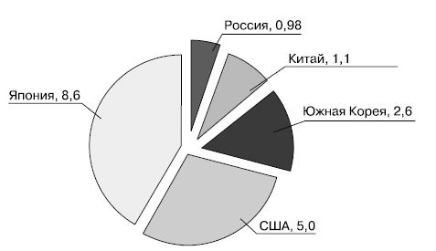 Рис. 18. Производство автомобилей (млн шт., 2002 г.)