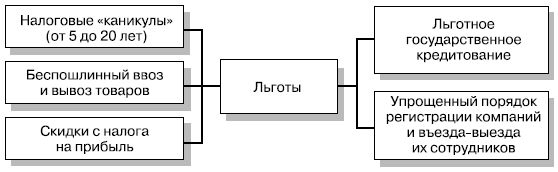 Среди льгот, предоставляемых свободными экономическими зонами, выделяются [41] (рис. 22):