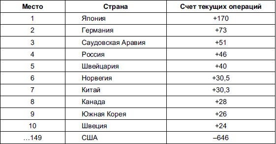 Таблица 20. Страны-лидеры по балансу счета текущих операций (в млрд $, на конец 2004 г.)