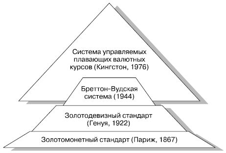Международная валютная система начала складываться во второй половине XIX в. Ее формирование напрямую связано с лидерством в организации национальных денежных систем золотого стандарта (рис. 24).