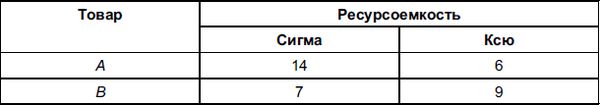 Таблица 9. Ресурсоемкость товаров в странах Сигма и Ксю