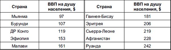 В табл. 15 представлены наиболее бедные страны, расположенные в Азии и Африке.