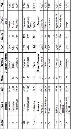 Таблица 16. Страны-лидеры, а также занимающие последние 3 места на каждом из континентов по уровню индекса человеческого развития