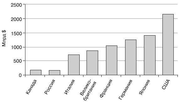 Рис. 7. Доходы госбюджетов стран "большой восьмерки" (2005 г.) [20]