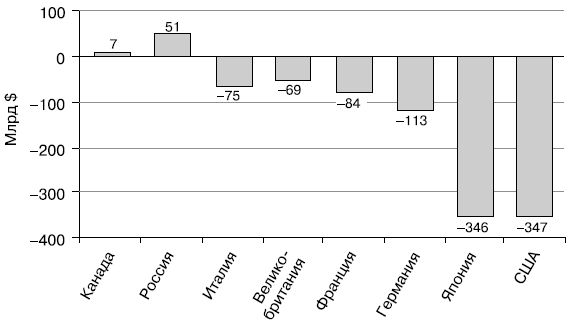 Рис. 9. Сальдо госбюджетов стран "большой восьмерки" (2005 г.).