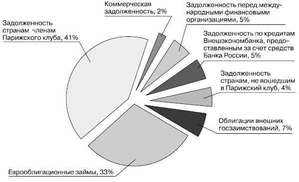 Россия является не только должником, но и кредитором других государств. Сумма долгов различных стран РФ равняется приблизительно $120 млрд. Крупнейшие должники России – это ее бывшие соратники по строительству социализма: Куба ($20 млрд), Сирия – 13, Вьетнам – 9,5; общая задолженность стран СНГ составляет сумму, равную $9 млрд (среди них больше всего должны Украина, Казахстан и Узбекистан).