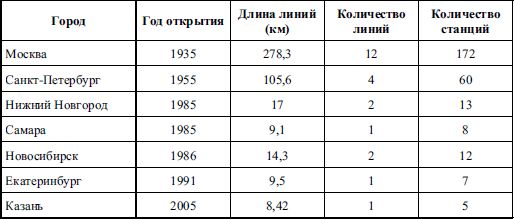 Таблица 9 Метрополитены России