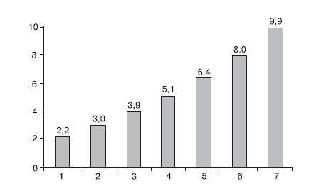 В 2002 г. в РФ 40,3 % населения получали доходы в размере менее чем 2500 руб.; в 2006 г. таких людей осталось 7,6 % (рис. 2).