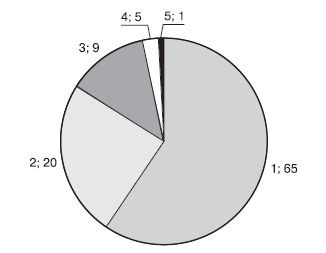 Рис. 62. Структура внутреннего долга РФ (%) [104] Обозначения на рисунке: 1 – ОФЗ-АД; 2 – ОФЗ-ПД; 3 – ОФЗ-ФК; 4 – ГСО-ФПС; 5 – ГСО-ППС