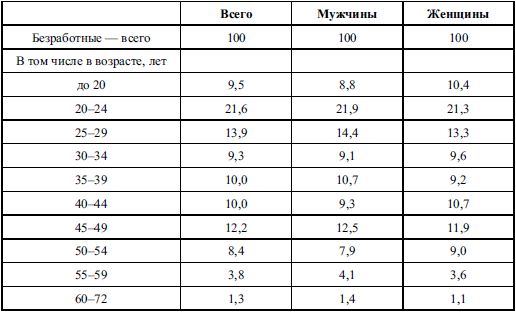 Таблица 2 Распределение численности безработных по возрасту и полу в 2006 г. (%) [13]
