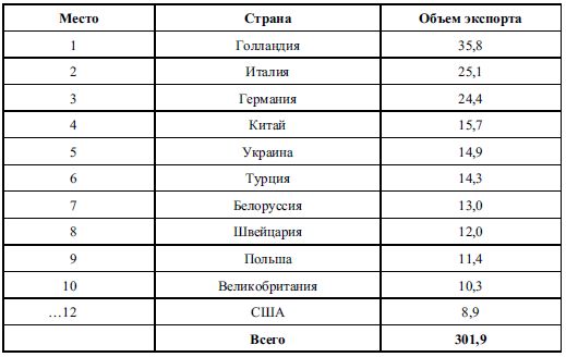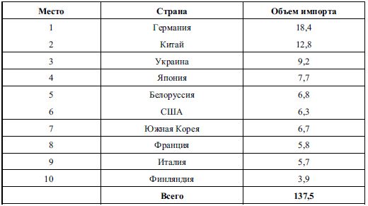Как видно из табл. 18 и 19, основными внешнеторговыми партнерами РФ являются Германия, Украина, Китай и Белоруссия.